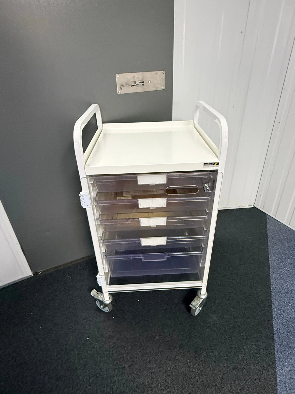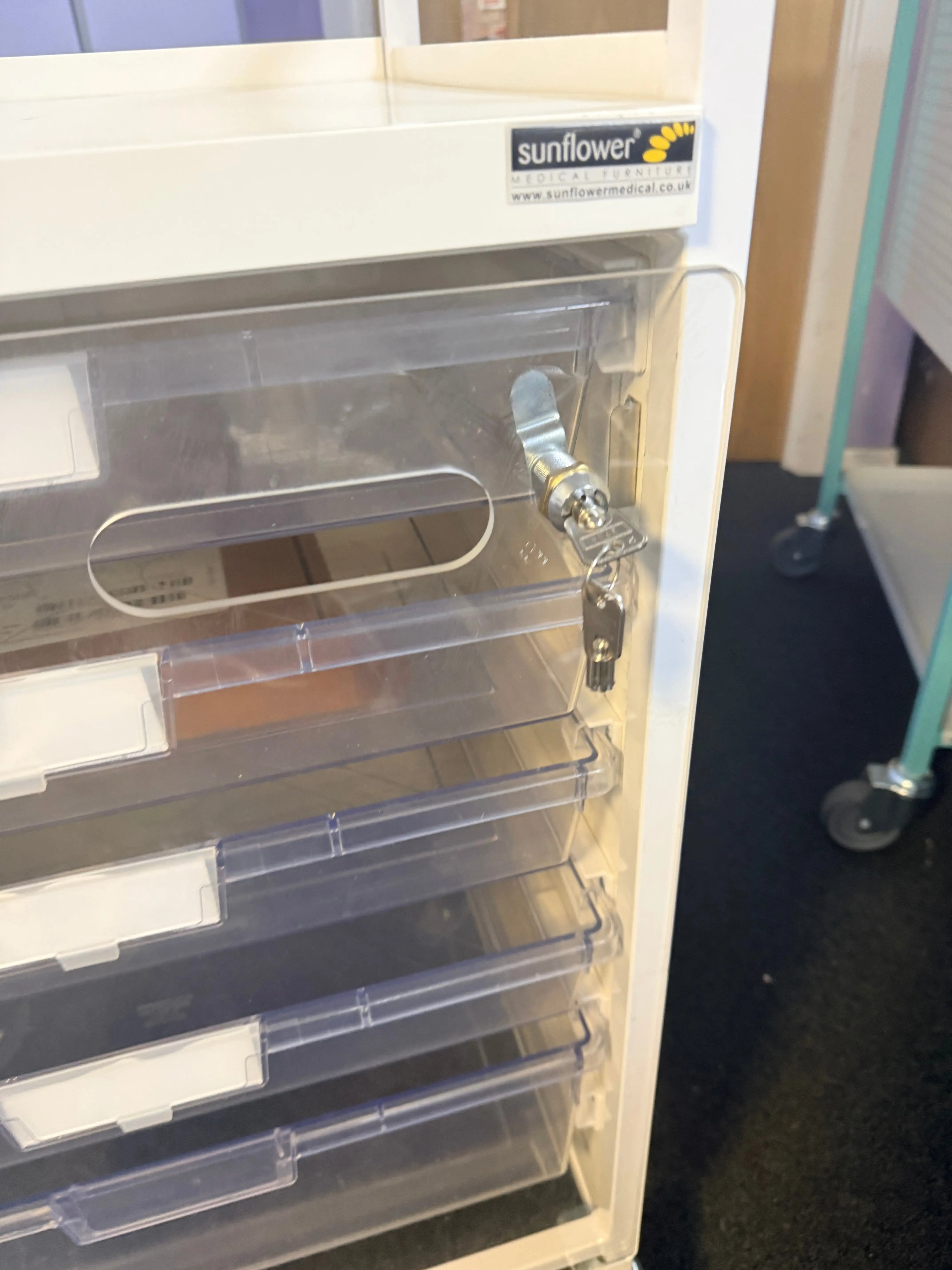 The Mobile Drawer Unit Sunflower model is a secure and practical storage solution designed for clinical environments. This Mobile Drawer Unit is commonly used beneath examination couches or as a standalone trolley component, offering convenient access to essential medical supplies.